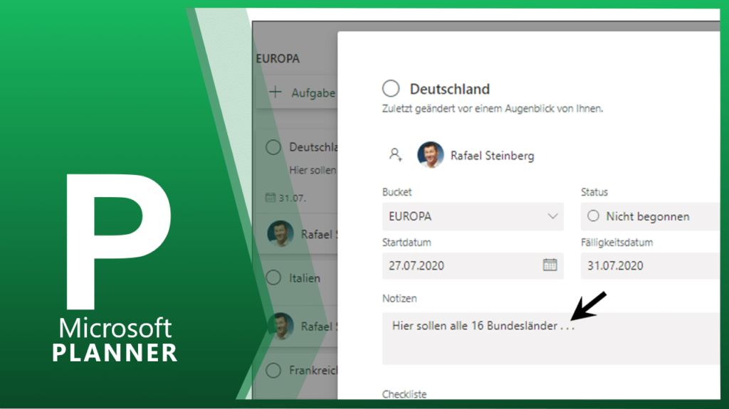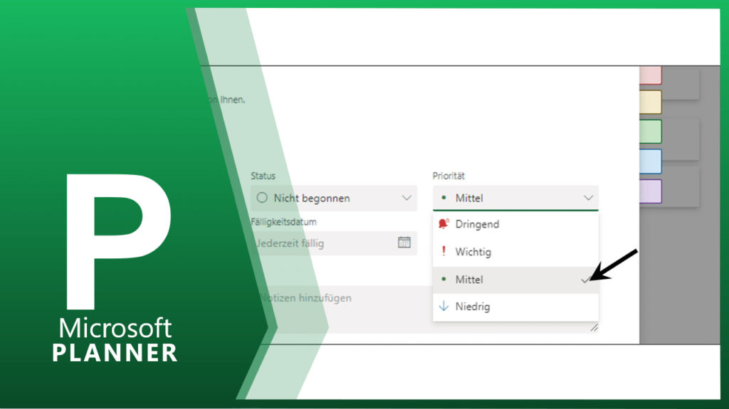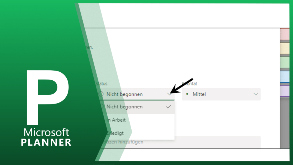 In der Option STATUS lässt sich der Fortschritt der Aufgabe ablesen. Der Planner unterscheidet hier nur drei Zustände NICHT BEGONNEN, IN ARBEIT und ERLEDIGT.