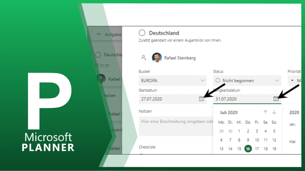Ihre Start- und. Endtermine geben Sie über die Schaltflächen Start- bzw. Fälligkeitsdatum ein.