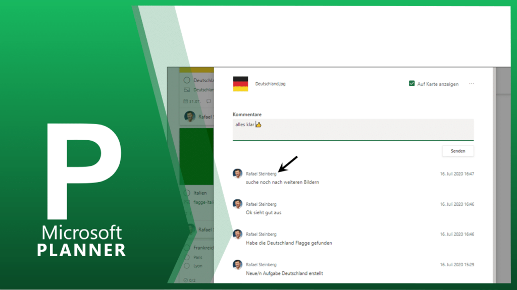 Die Aufgabe kann von allen Teammitgliedern kommentiert werden. Die Kommentare sind auch im Gruppen-E-Mail-Postfach zu sehen. Auszug aus dem Gruppenpostfach Reiseführer.