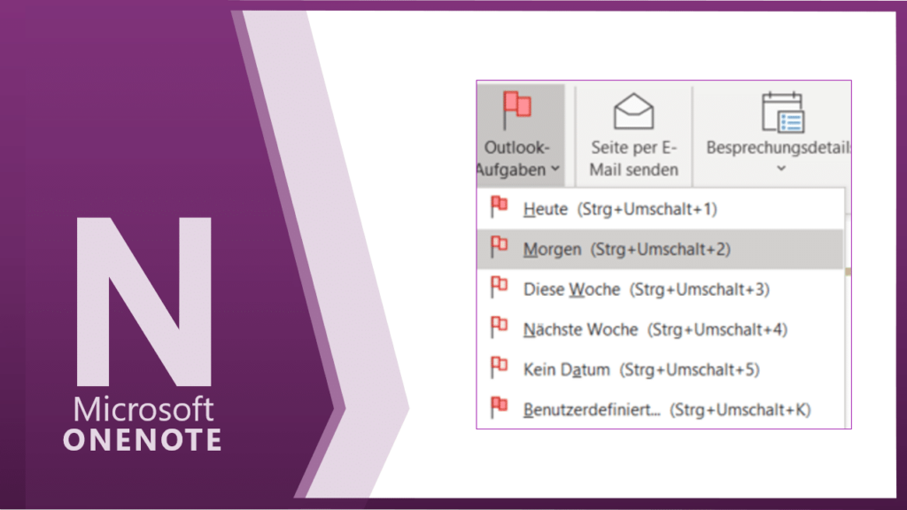 Outlook sollte zum Organisieren und OneNote zum Dokumentieren genutzt werden. Das bedeutet, das detaillierte Aufgaben an OneNote gesendet werden mit AUFGABE / ONENOTE. Im aufgehenden Fenster wählen Sie das gewünschte Notizbuch. Die Aufgabe wurde in OneNote abgelegt. Sobald die Aufgabe in OneNote oder Outlook erledigt ist, wird der Status in beiden Programmen aktualisiert.