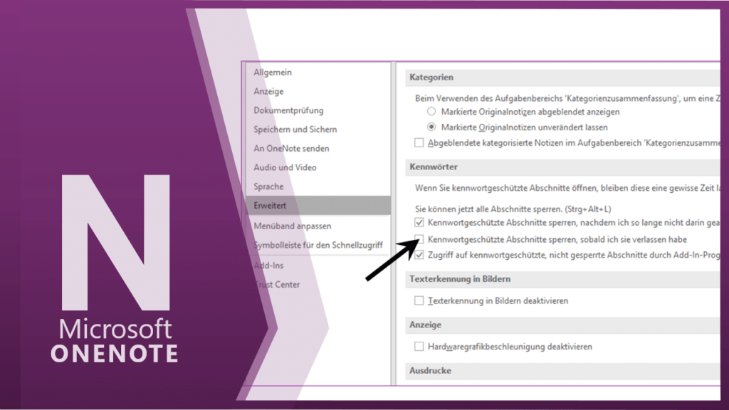 Möchten Sie Ihre Notizen ohne den OneNote Befehlen anschauenden, dann sind Sie bei der GANZSEITENANSICHT richtig. Alternativ über [F11]. In die Normalansicht gelangen Sie über den Pfeil in der rechten oberen Ecke.