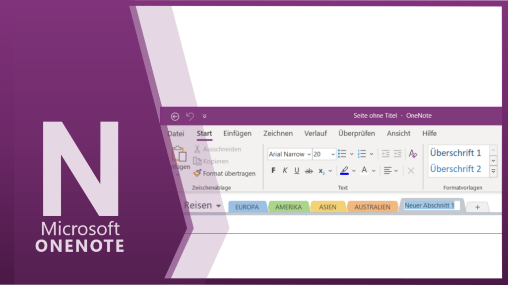 Im Reiter ANSICHT lässt sich die Darstellung Ihrer Notizen bzw. von OneNote anpassen. Die Standardansicht in OneNote ist immer die Normalansicht.