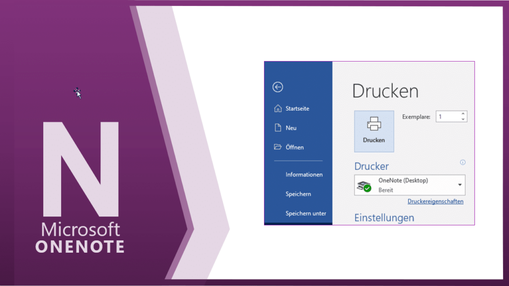 Sie können in jedem Programm über die Druckereinstellung SEND TO ONENOTE an OneNote senden. Im aufgehenden Fenster wählen Sie Ihr gewünschtes Notizbuch.