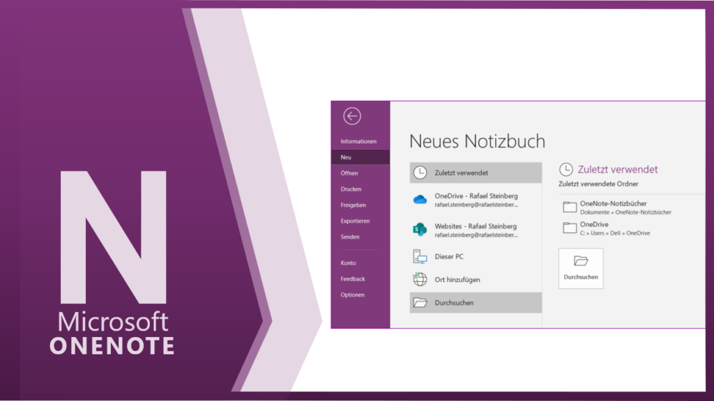 Über DATEI / NEU können Sie ein neues Notizbuch anlegen. Über die Schaltfläche DURCHSUCHEN können Sie den Speicherort individuell anpassen. Den Namen eingeben und mit OK bestätigen. DIESER PC Mit Hilfe der Option DIESER PC können Sie lokal ein Notizbuch anlegen. Einfach Notizname eintragen und mit NOTIZBUCH ERSTELLEN bestätigen. NETZWERK Über DURCHSUCHEN können Sie Ihr […]