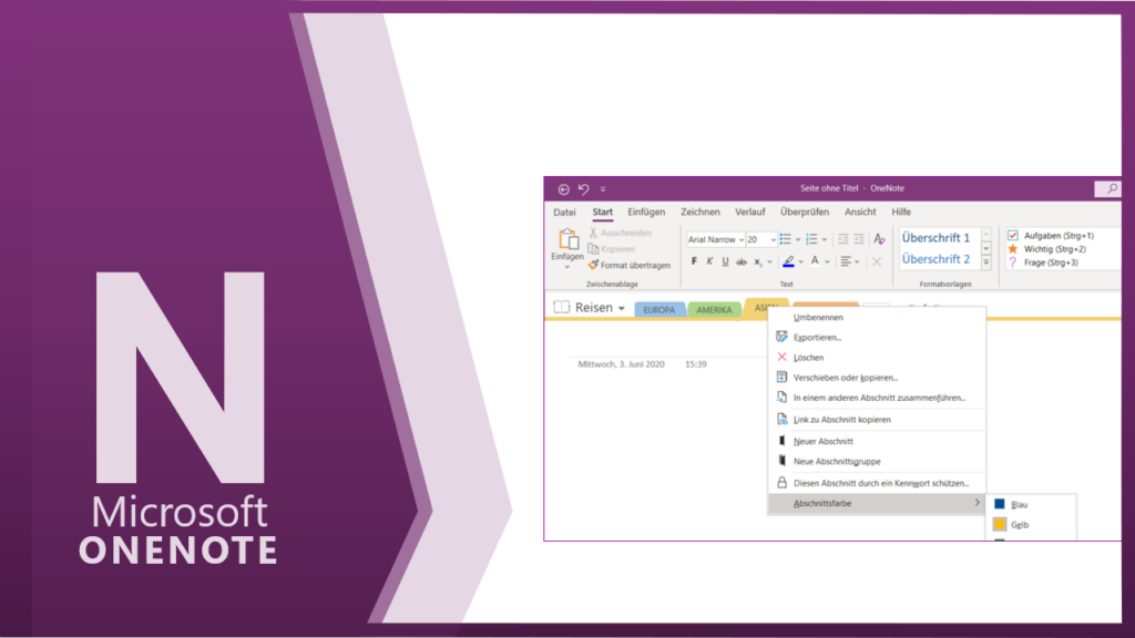 Damit Sie nicht jedes Mal von einem Abschnitt ins nächste Klicken müssen, können Sie OneNote in einem zweiten Fenster öffnen. So können Sie gleichzeitig mehrere Abschnitte einsehen. Alternativ: [STRG] + [M]