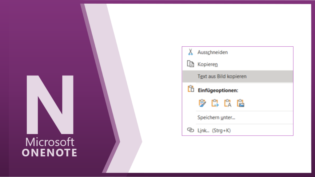 OneNote erkennt Text in Bildern. Möchten Sie diese aus den Grafiken kopieren, dann mit einem RECHTSKLICK auf das Bild und die Funktion TEXT AUS BILD KOPIEREN.