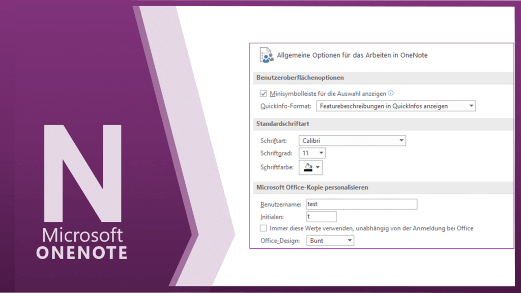 Unter ALLGEMEIN lässt sich der BENUTZERNAME und die STADARDSCHRIFT einstellen.