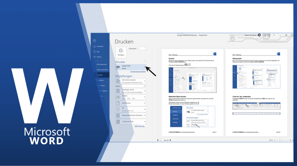 Möchten Sie Ihren geschriebenen Text zu Papier bringen, dann drucken Sie Ihr Dokument über die Schaltfläche DATEI / DRUCKEN aus. Oder über die Tastenkombination [Strg] + [P].