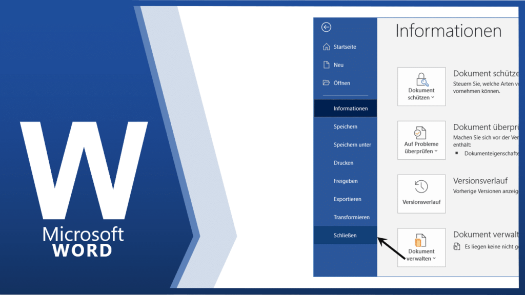 Möchten Sie das aktuelle Dokument schließen, dann wählen Sie unter DATEI die Option SCHLIEßEN.