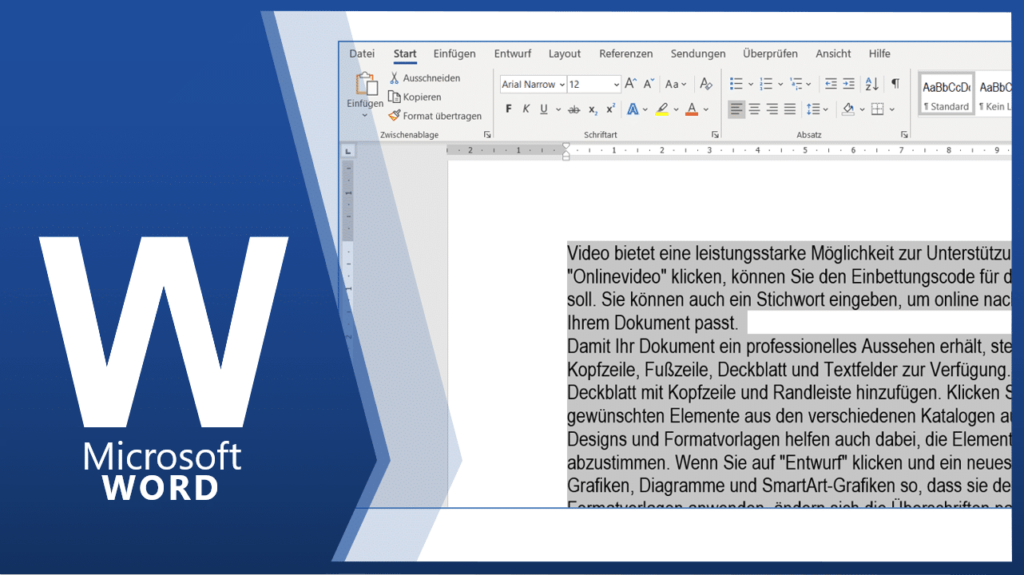 Anstatt der Maus haben Sie auch die Möglichkeit mit der Tastatur zu markieren. Eine beliebte Tastenkombination ist die [Strg] + [A] Taste. Damit wird der gesamte Text markiert.
