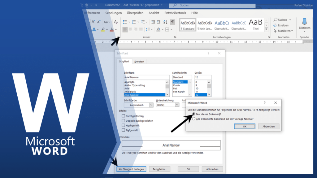 Beim Öffnen von Word ist die Standardschrift bei Neuinstallierung „Times New Roman“ und es ist lästig diese immer wieder umzustellen. Die Formatvorlage Standard wird über das Dialogfeld SCHRIFTART eingestellt. Sie stellen Ihre gewünschte Zeichenformatierung ein und klicken auf ALS STANDARD FESTLEGEN, um die Einstellung zum Standard zu erklären. Wenn Sie im aufgehenden Fenster auf JA […]
