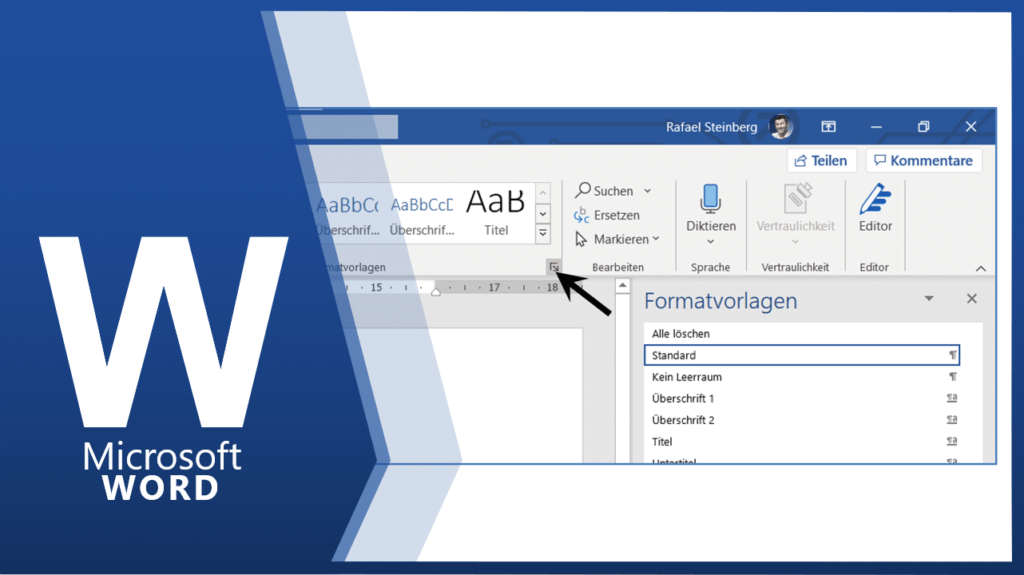 Über das Kästchen FORMATVORLAGEN ANZEICHEN gelangen Sie zu dem Aufgabenbereich Formatvorlage.