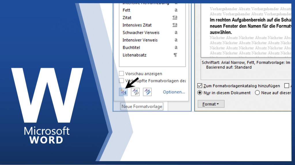 Im rechten Aufgabenbereich auf die Schaltfläche NEUE FORMATVORLAGE klicken. Danach im neuen Fenster den Namen für die Formatvorlage eingeben und die gewünschte Formatierung auswählen.