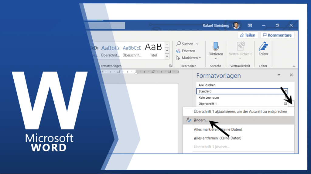 Sie haben die Möglichkeit im Aufgabenbereich auch die Formatvorlage zu ändern. Wählen Sie eine Formatvorlage aus und klicken auf die Option ÄNDERN. Im aufgehenden Fenster können Sie die Formatvorlage individuell verändern.
