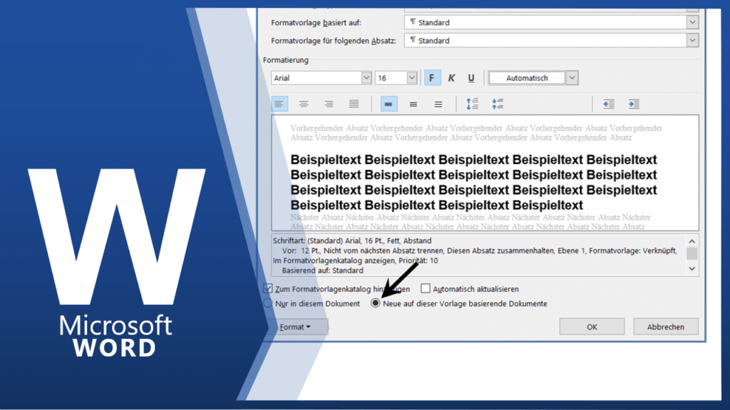 Mit der Option NEUE AUF DIESER VORLAGE BASIERENDE DOKUMENTE können Sie die Formatvorlage dauerhaft speichern.