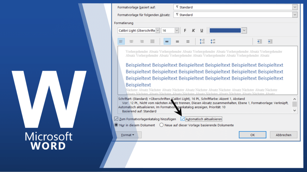 Durch die Funktion AUTOMATISCH AKTUALISIEREN werden die Veränderungen nachträglich im Dokument aktualisiert.