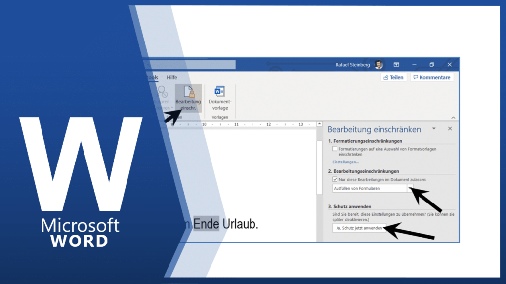 Zum Schluss muss das Formular noch geschützt werden. Das erreichen Sie durch das Anklicken der Schaltfläche BEARBEITUNG EINSCHRÄNKEN.