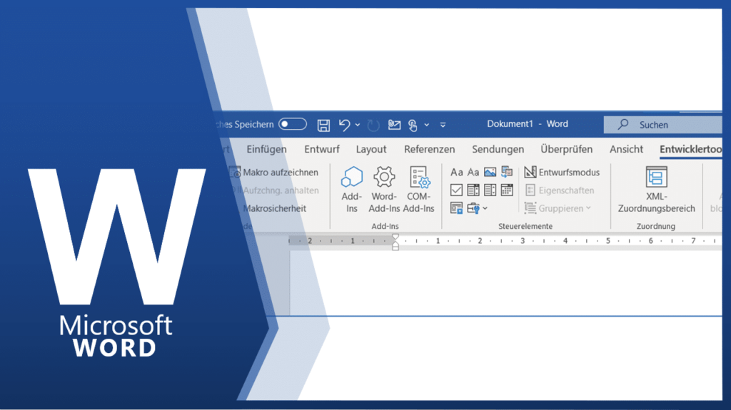 Formulare sind Word-Dokumente, in denen der Benutzer nur in ganz bestimmten Feldern (Formularfelder) etwas eingeben bzw. etwas verändern kann. Alles andere ist für den Benutzer gesperrt. Um Formularfelder zu erstellen, müssen Sie das Menüband ENTWICKLERTOOLS über DATEI / OPTIONEN / MENÜBAND ANPASSEN einblenden. Die eingeblendete Registerkarte ENTWICKLERTOOLS.