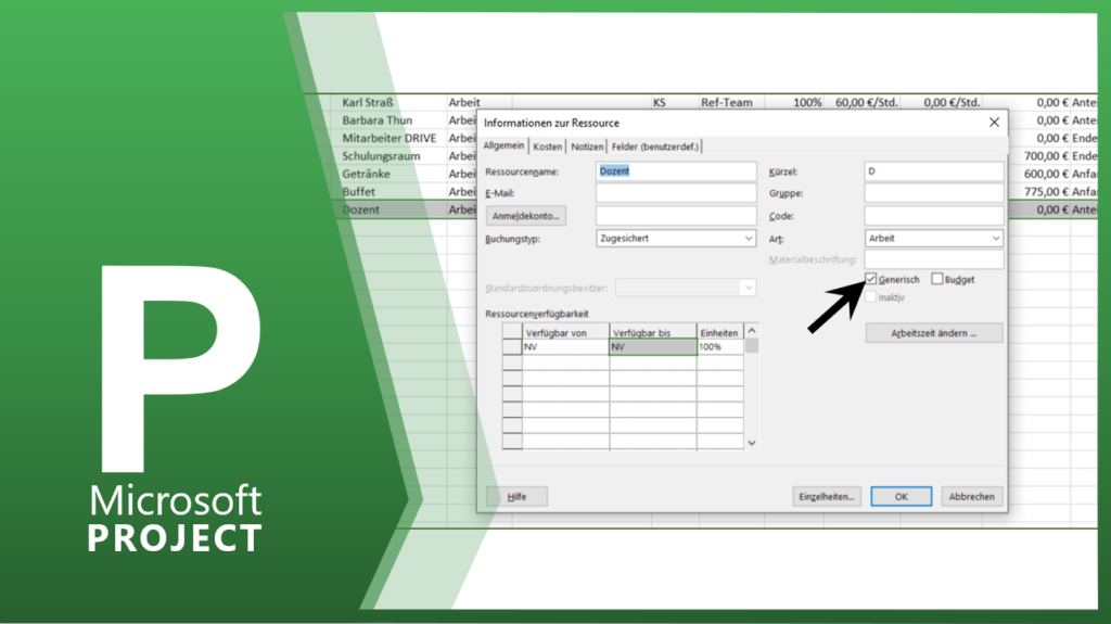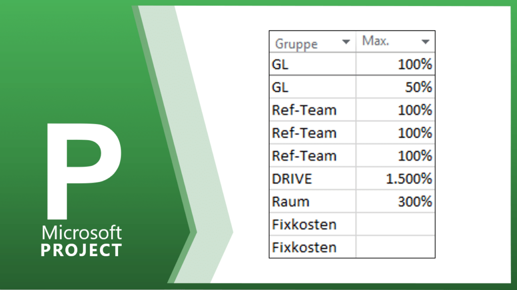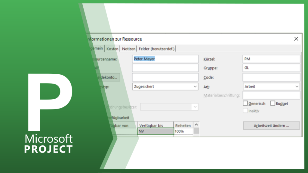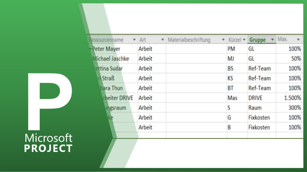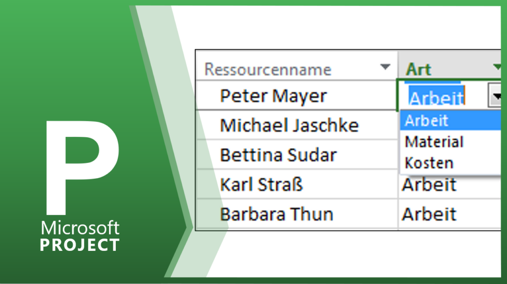 In der zweiten Spalte wird die Ressourcenart gewählt. MS Project unterscheidet zwei Arten, die ARBEIT und das MATERIAL bzw. KOSTEN. Wenn Sie einer Ressource die Ressourcenart ARBEIT zuordnen, dann geht MS Project davon aus, dass diese Ressource begrenzt zu Verfügung steht. Das heißt, bei einer Überlastung wird diese Ressource automatisch rot formatiert. MATERIAL und KOSTEN […]