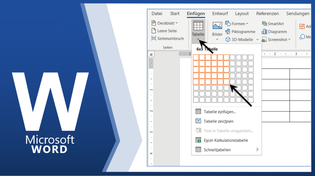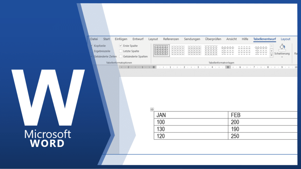 Am einfachsten fügen Sie eine Tabelle über den Tabellenassistenten ein. Im Menüband wählen Sie die Schaltfläche TABELLE und ziehen mit der gedrückten linken Maustaste so weit, bis Sie die gewünschten Spalten und Zeilen markiert haben. Sobald Sie die Maustaste loslassen, erhalten Sie im Dokument Ihre Tabelle. Andere Möglichkeit Sie können aber auch über den Befehl […]
