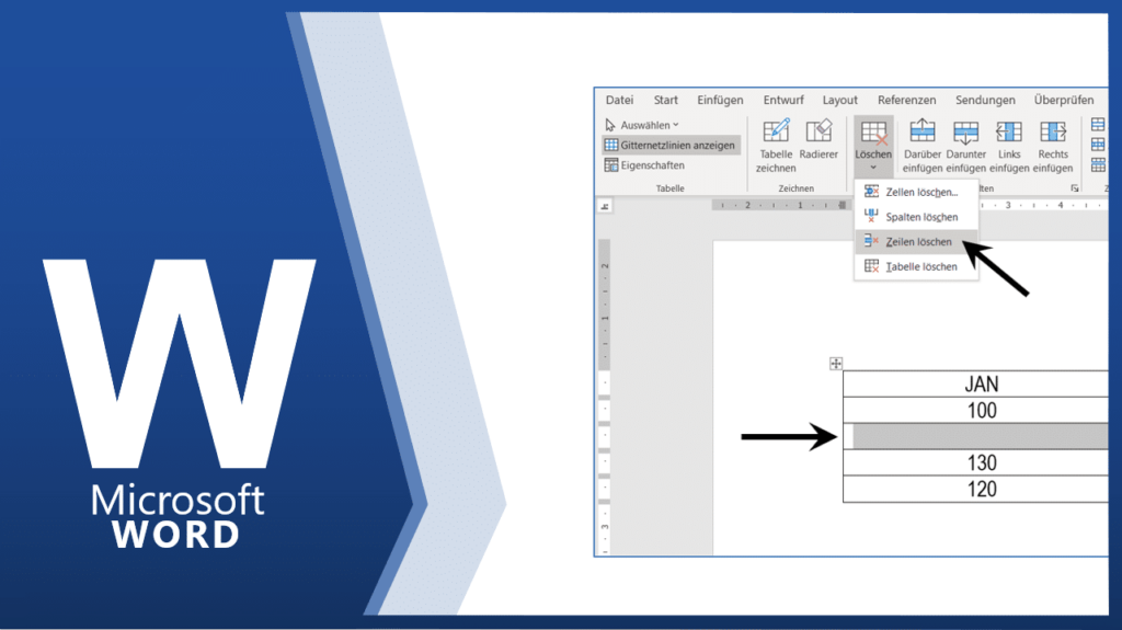 Möchten Sie Zeilen löschen? Dann markieren Sie die Zeilen, die Sie löschen wollen, und klicken auf die Schaltfläche LÖSCHEN / ZEILEN LÖSCHEN.