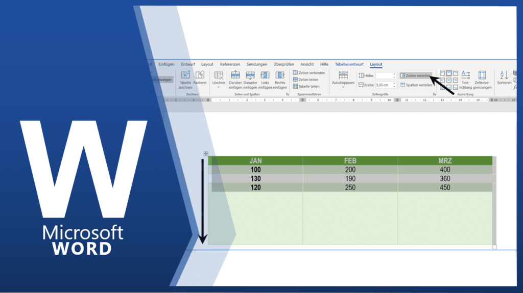Soll die Spaltenbreite bzw. Zeilenhöhe gleichmäßig für alle Zellen ausgerichtet sein, dann markieren Sie Ihre Zellen und richten Sie sie über die Schaltfläche ZEILEN VERTEILEN bzw. SPALTEN VERTEILEN aus.